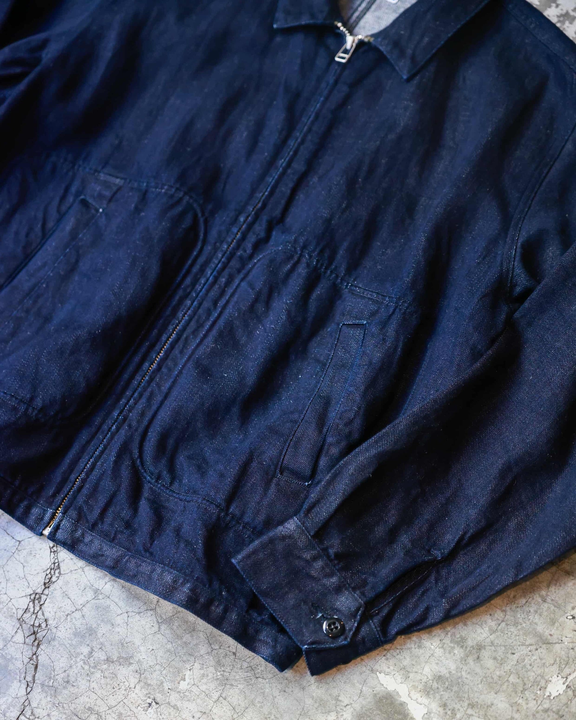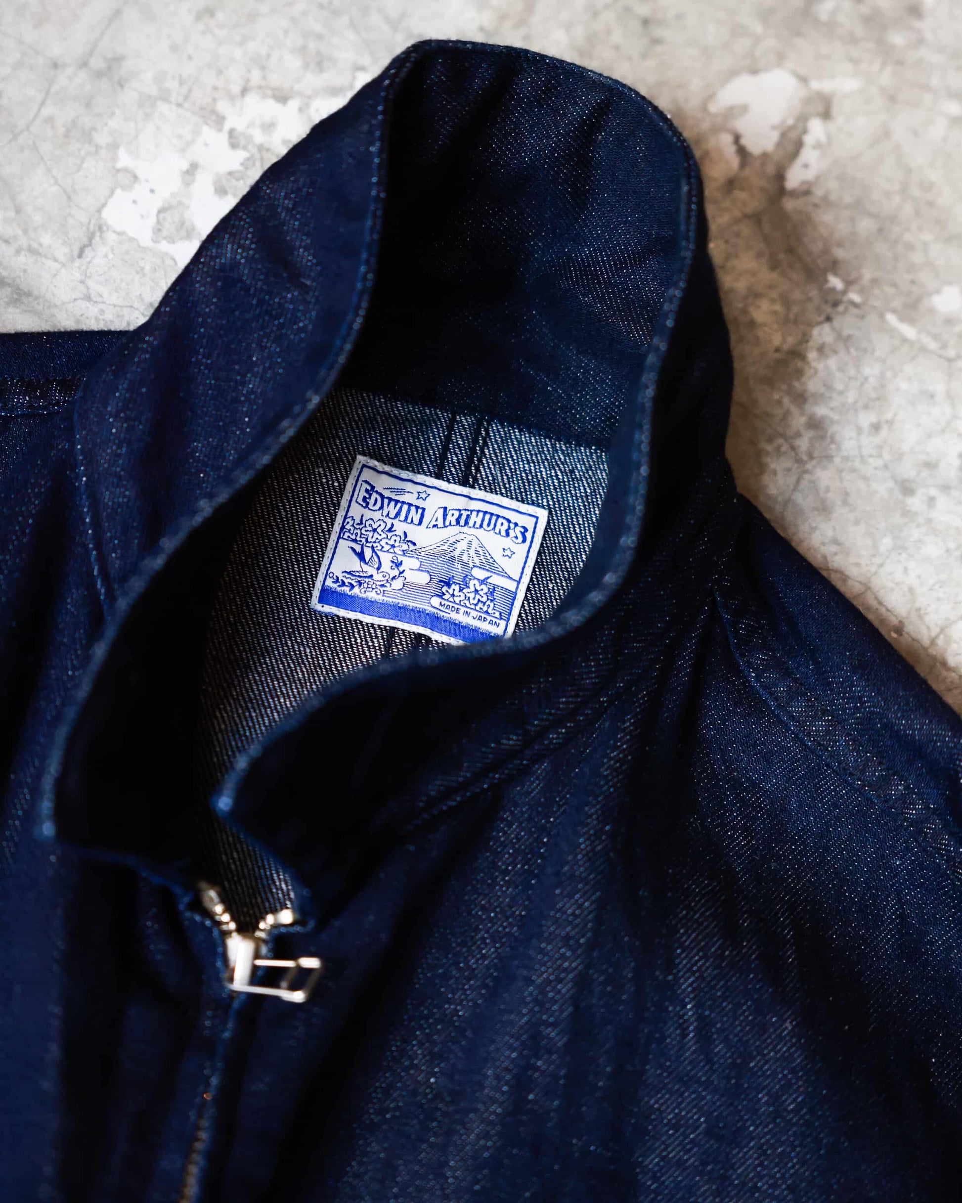 This piece pulls references from vintage racing jackets, and applies it to a modern cut, adding details that elevate the original. The denim is spun on vintage shuttle looms using extra long bobbins for fabric integrity. It is washed once to give it an immediate soft hand feel.